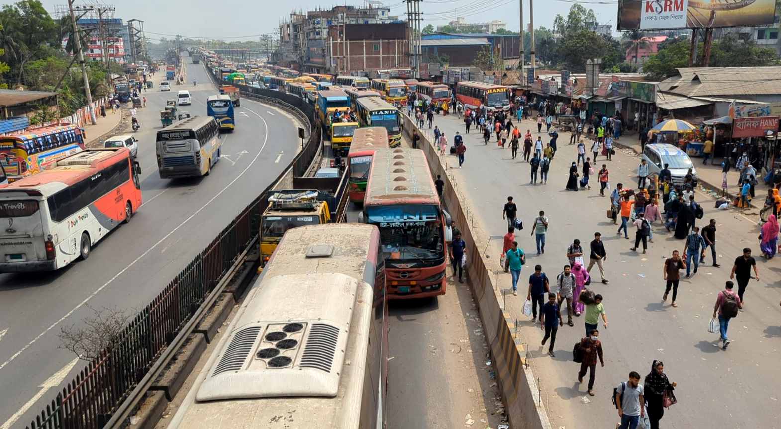 প্রিয়জনদের সঙ্গে ঈদ উদযাপন করতে ঘরমুখো মানুষের চাপ বেড়েছে গাজীপুরের দুই মহাসড়কে৷ ঢাকা-ময়মনসিংহ মহাসড়কে যানবাহনের চাপ থাকলেও যানজটের সৃষ্টি হয়নি৷ তবে ঢাকা-টাঙ্গাইল মহাসড়কের চন্দ্রা বাস টার্মিনালের আশপাশের ১২ কিলোমিটার এলাকায় থেমে থেমে যানজটের সৃষ্টি হয়েছে।